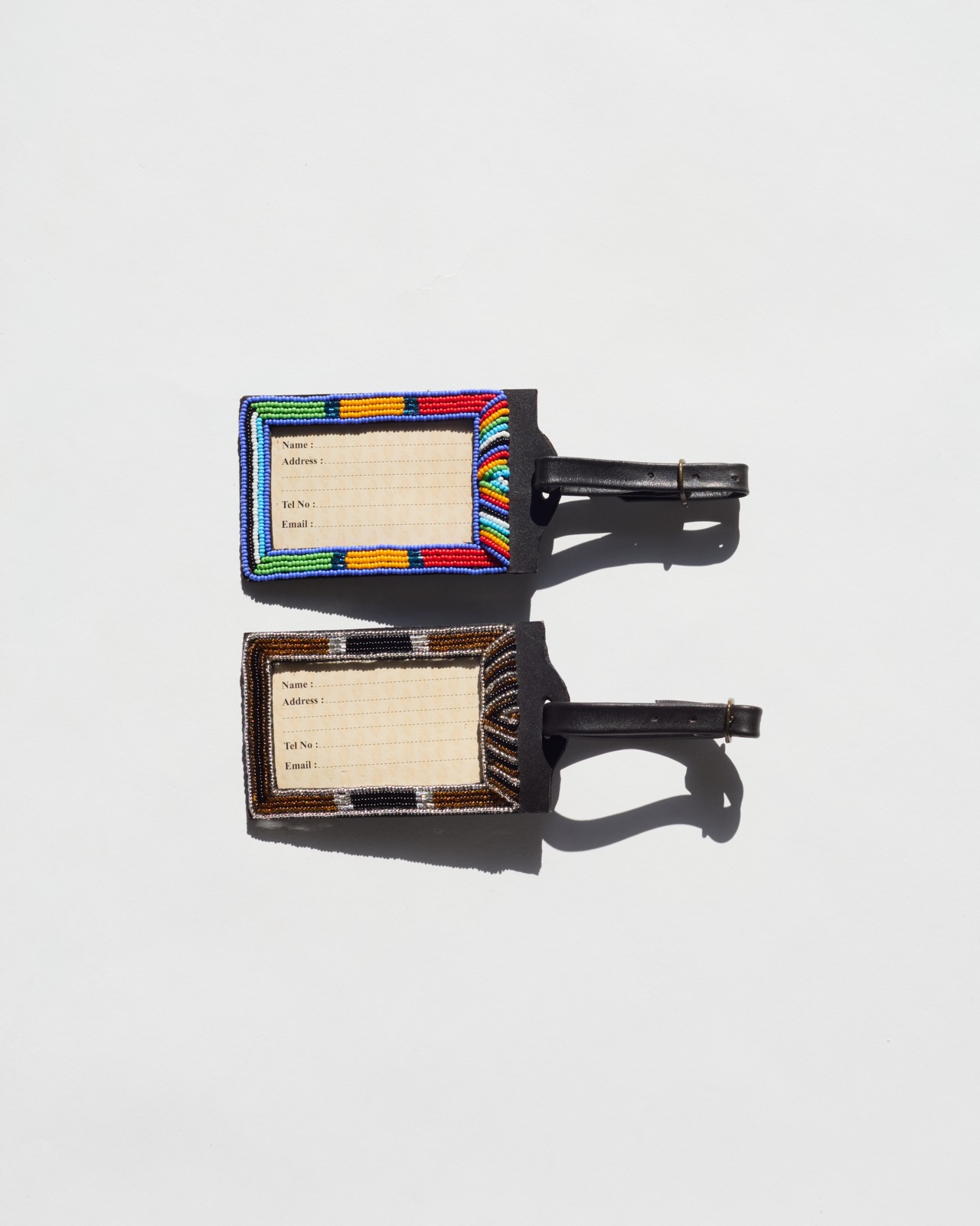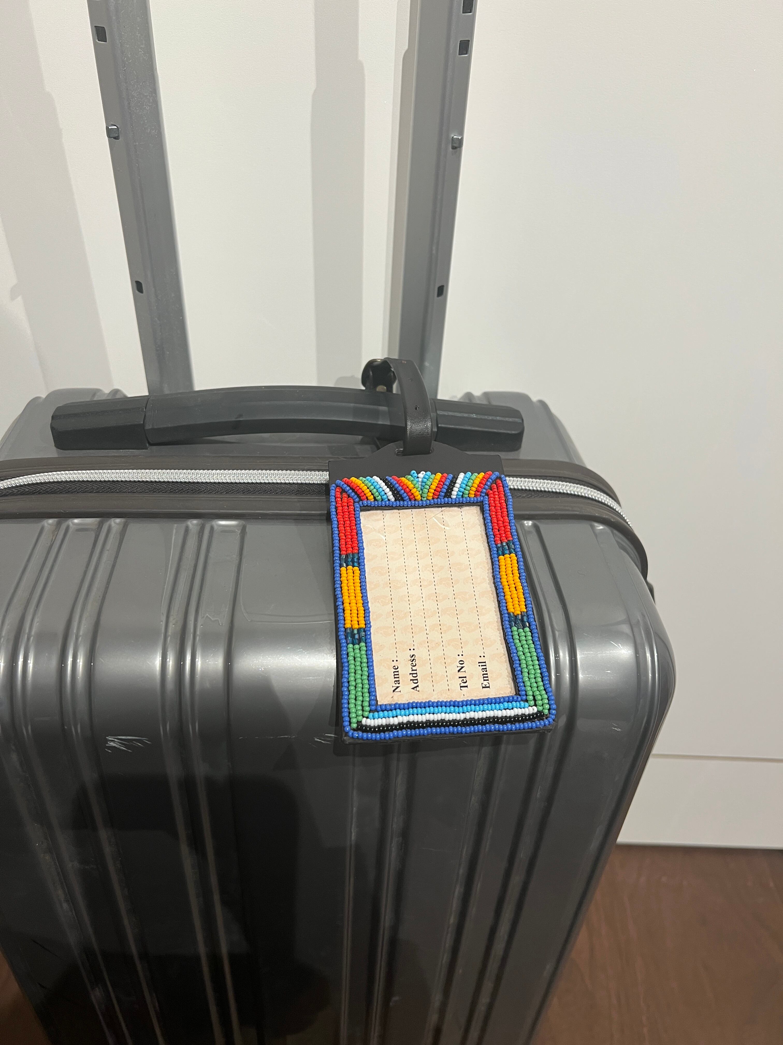 ケニアの職人が手作業で丁寧に製作したビーズのネームタグです。カラフルなビーズが特徴で、トランクや旅行バックに取り付けることで、個性的なアクセントに。
