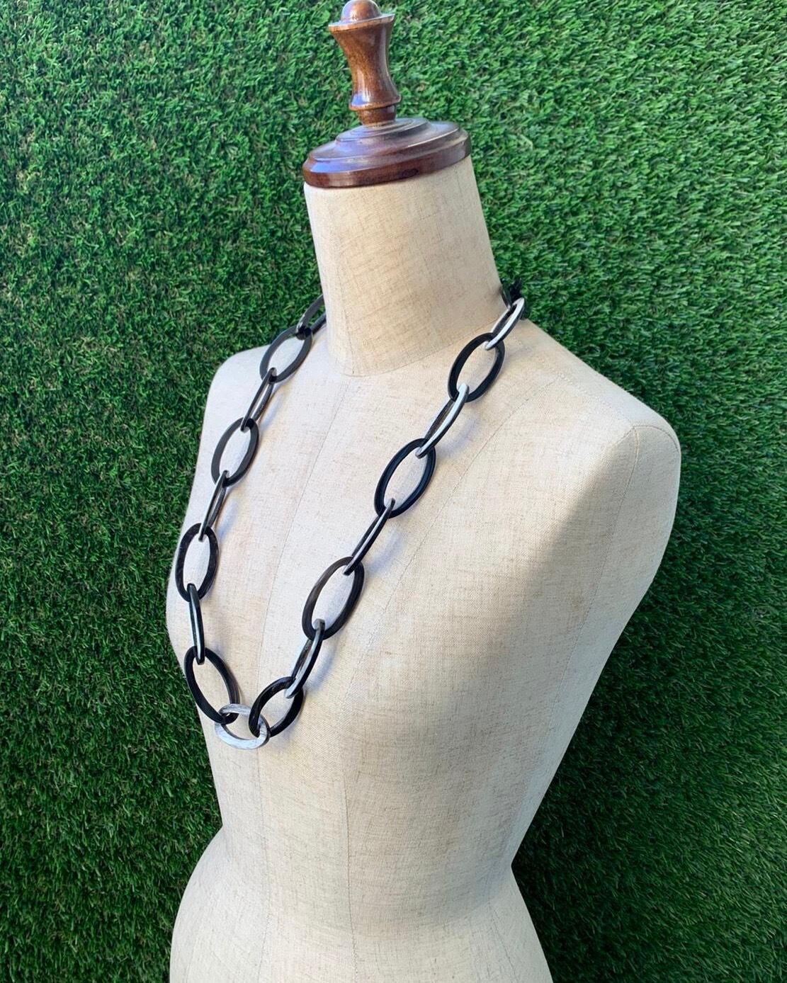 地球にやさしい素材で作られた、カウホーンネックレスです。ウガンダで食用肉の副産物である牛のツノをリサイクルして作られたこのネックレスは、一点一点手作りされており、深みのある色合いや繊細な模様がデザインの魅力。牛のツノから生まれた個性的なネックレスは、どんなコーディネートにもアクセントを加え、おしゃれ度を一気にアップさせます。この商品は、留める位置を変えることでラリエットのような使い方も可能です。