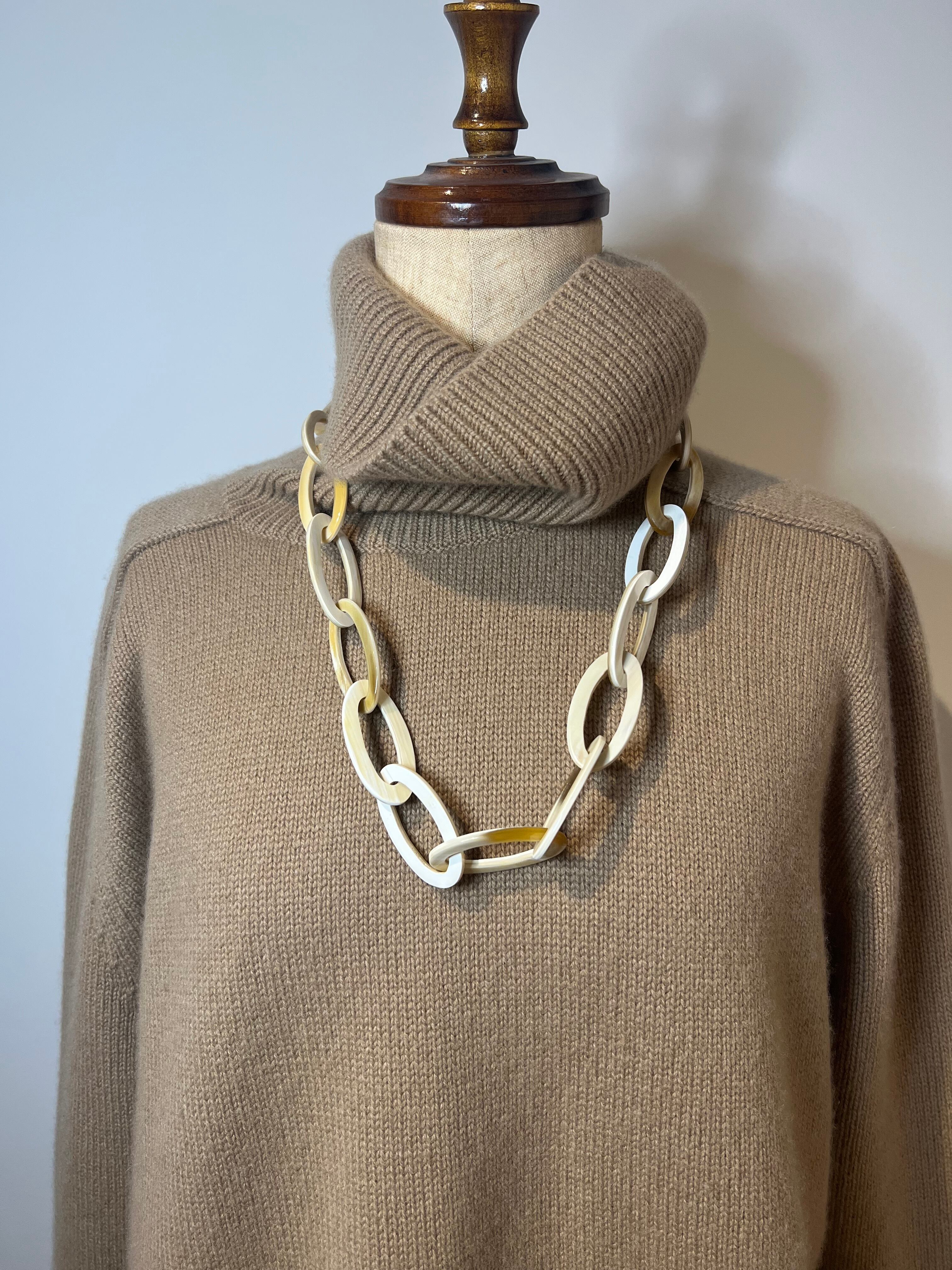地球にやさしい素材で作られた、カウホーンネックレスです。ウガンダの牛のツノをリサイクルして作られたこのネックレスは、一点一点手作りされており、深みのある色合いや繊細な模様がデザインの魅力。牛のツノから生まれた個性的なネックレスは、どんなコーディネートにもアクセントを加え、おしゃれ度を一気にアップさせます。