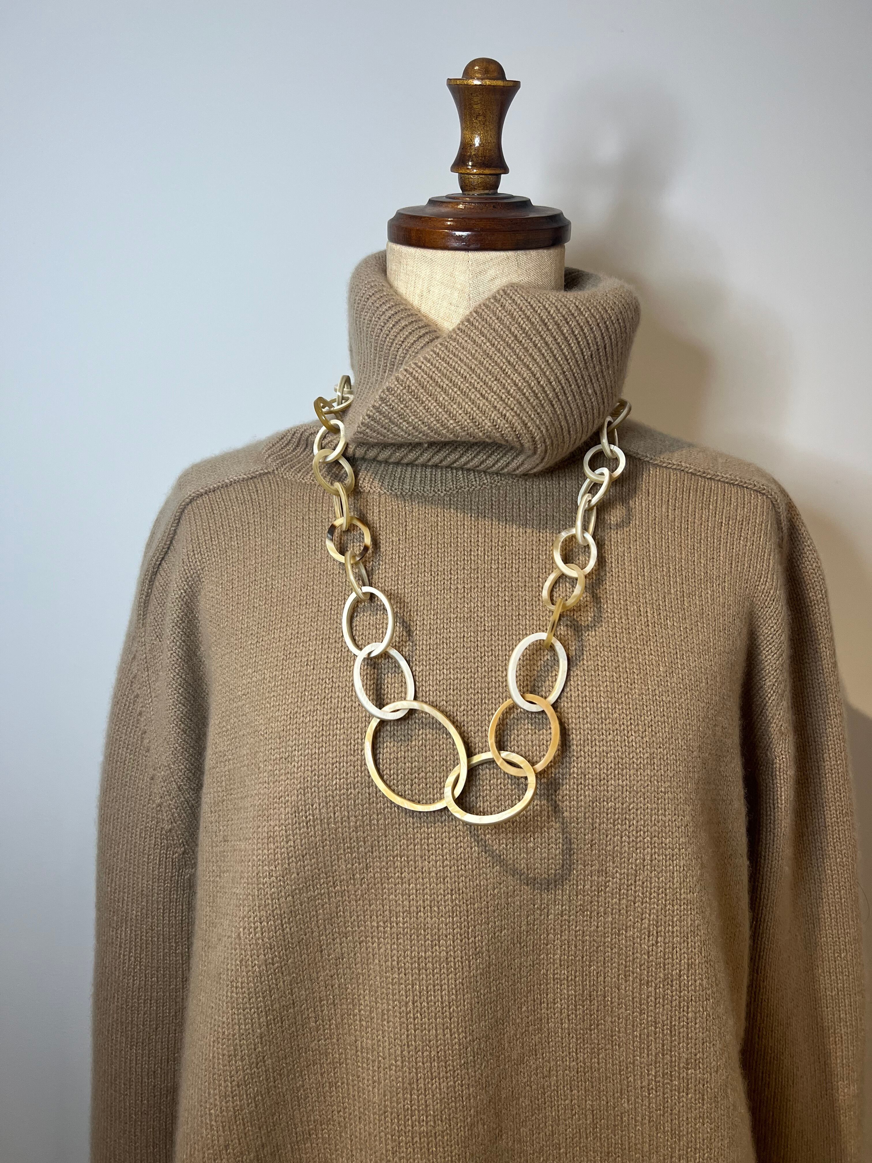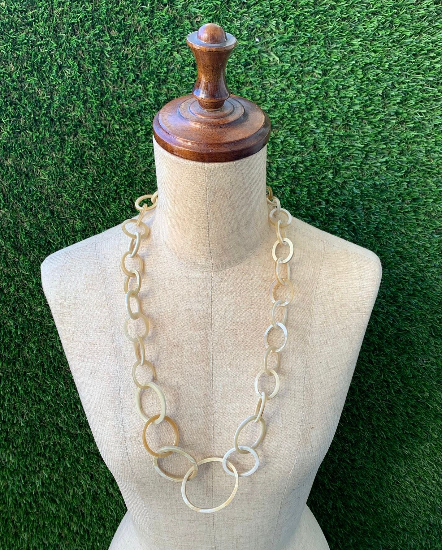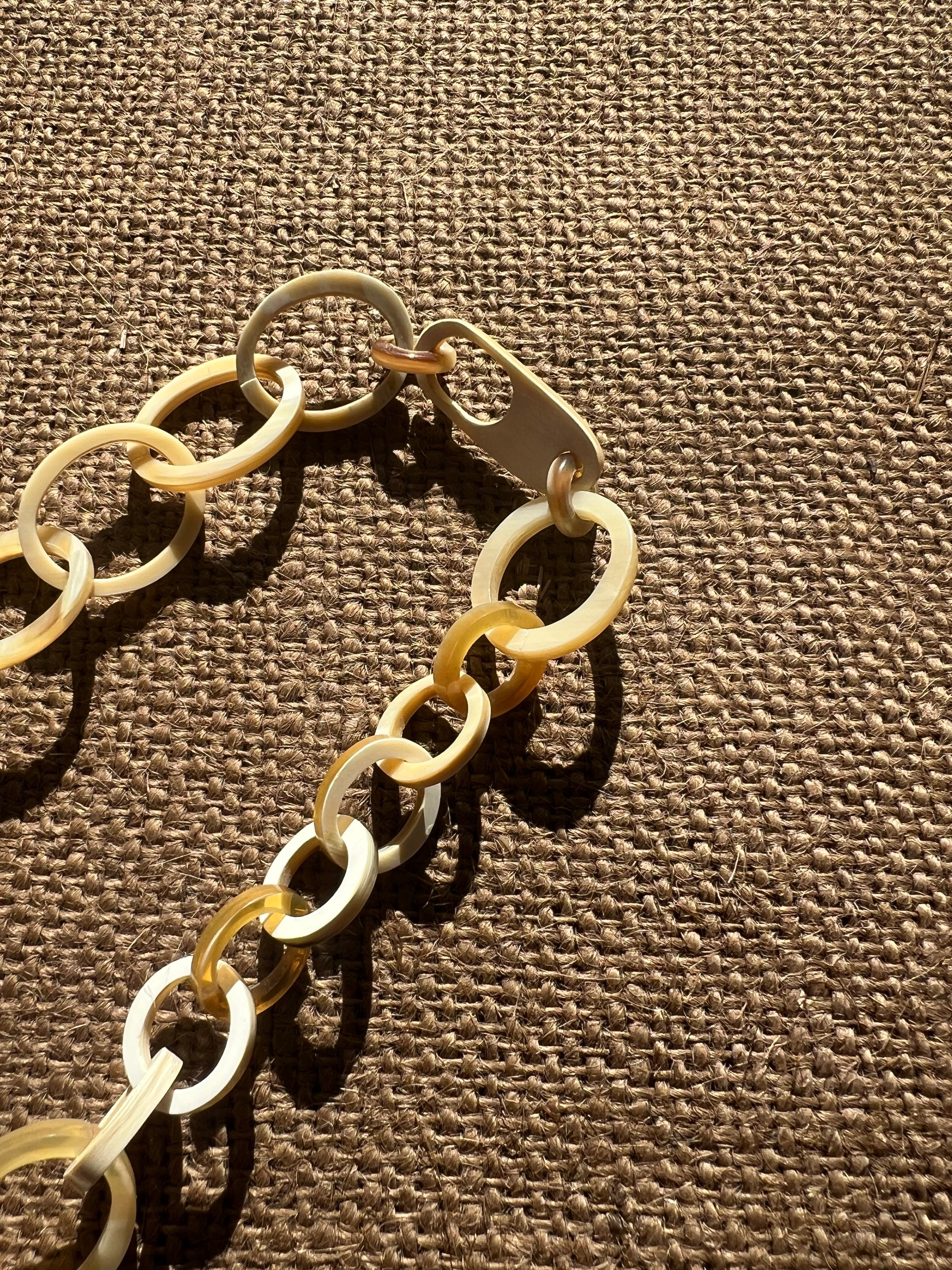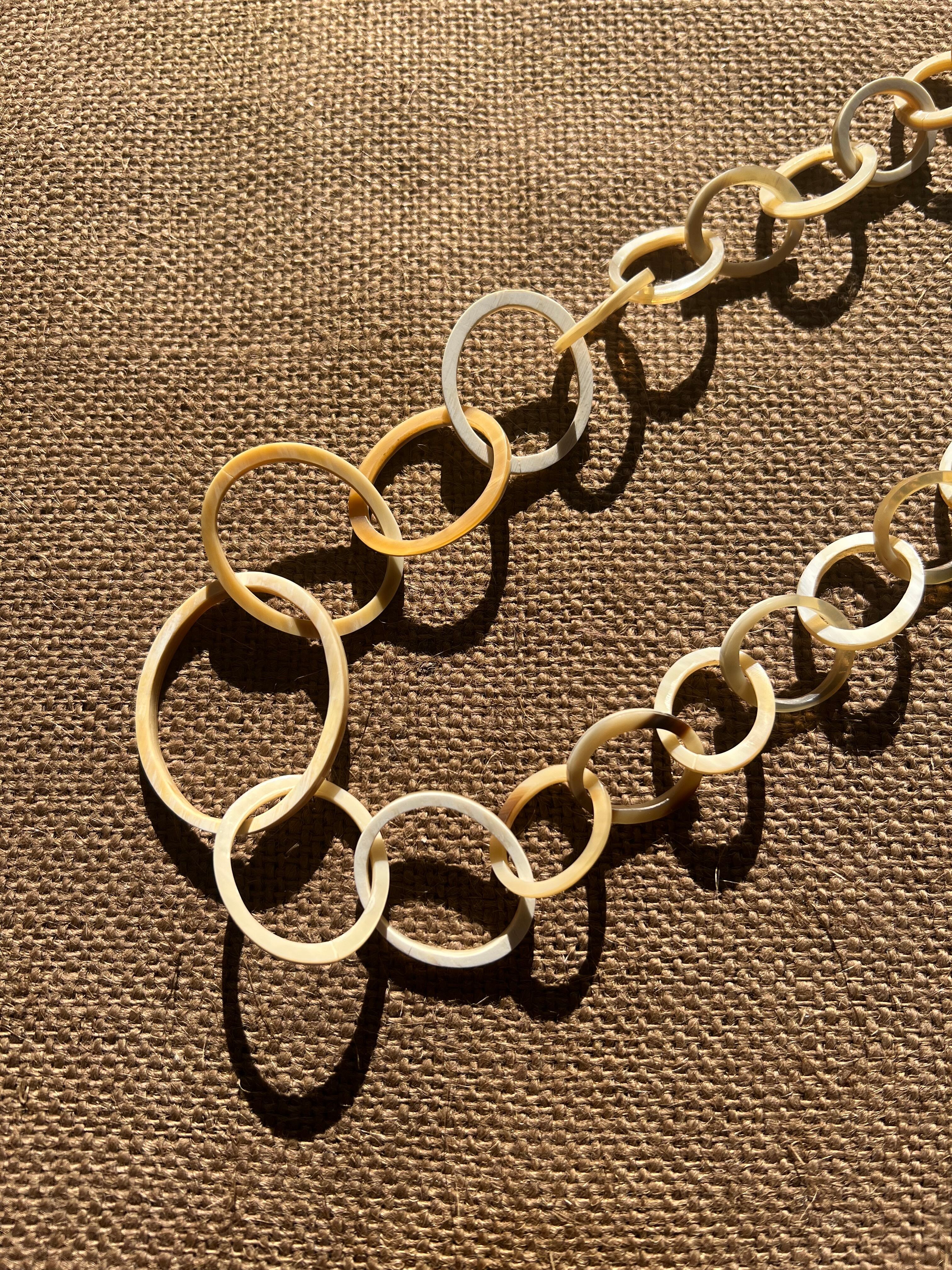 地球にやさしい素材で作られた、カウホーンネックレスです。ウガンダで牛のツノをリサイクルして作られたこのネックレスは、一点一点手作りされており、深みのある色合いや繊細な模様がデザインの魅力。牛のツノから生まれた個性的なネックレスは、どんなコーディネートにもアクセントを加え、おしゃれ度を一気にアップさせます。