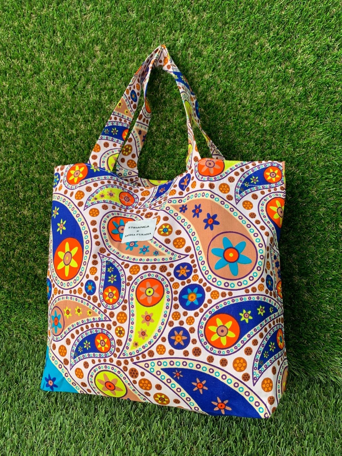 アフリカ布、キテンゲを使用したエコバッグ(M)。